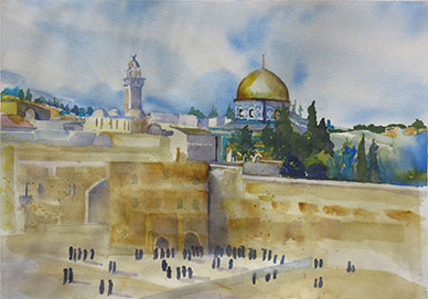 Jerusalem Holy Center # 1 Water Color, 22 x 16