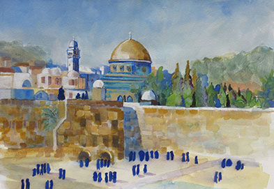 Jerusalem Holy Center # 2, Water Color, 20 x 14