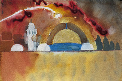 Israel, The Iron Dome, Water Color, 8 x 6